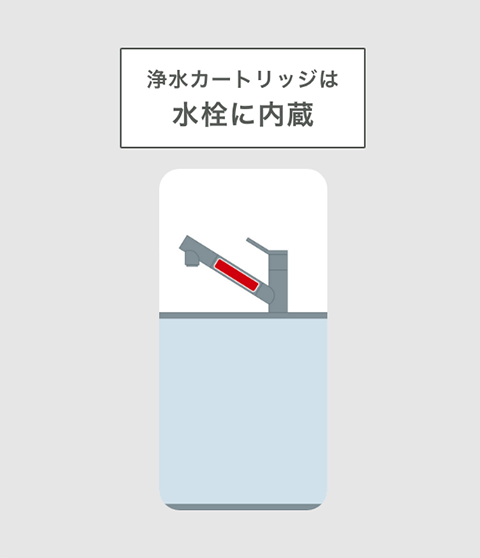 | 特徴 | 約4か月に一回交換する浄水カートリッジシャワーヘッドに内蔵されているカートリッジを交換 |